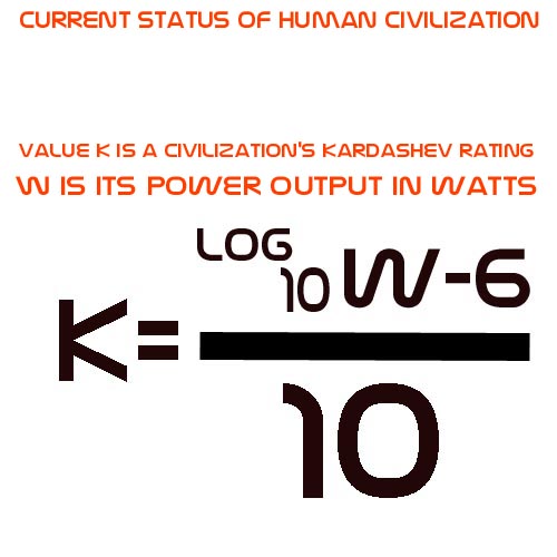 buradaki k sabiti bize, watt cinsinden güce göre medeniyet seviyesini veriyor.