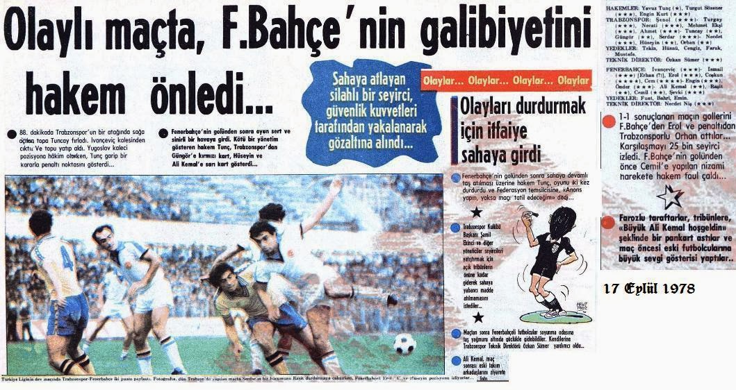 17 eylül 1978 ; bakın çok ilginç bir nokta silahlı bir trabzon taraftarı fenerbahçe golünden sonra sahaya iniyor. tam 38 sene önce.. bkz
