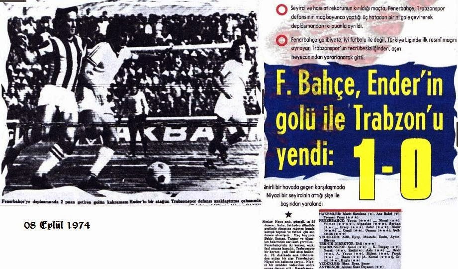 8 eylül 1974 ; trabzon ile fenerbahçe'nin ilk maçı ve olaylar daha ilk maçta başlıyor.