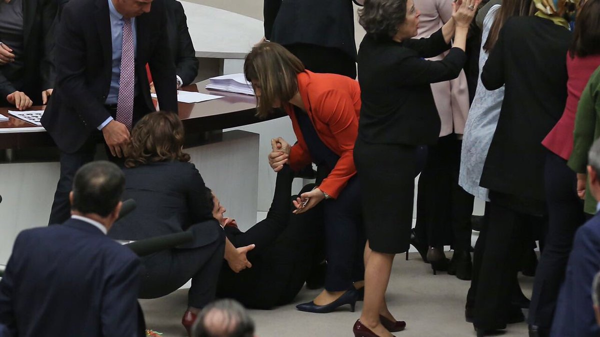başlatanlar akp'li milletvekilleridir. napsın diğerleri, dayaklarını mı yesinler ? hoş bir durum değil ama ortada engelli bir vekili bile yere düşürmekten imtina etmeyenler var.