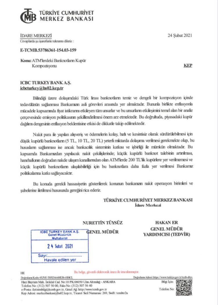 7. bankalara düşük banknot dağıtın talimatı verilmesi