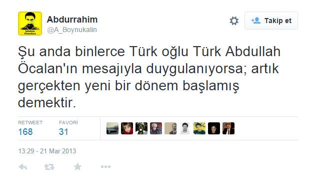 hadi akp'liler yine iyisiniz. öcalan'ın mektubunu meydanlarda yine okutur, onu barış elçisi olarak tanıtmaya devam edebilirsiniz. görsel, görsel, görsel, görsel, görsel -