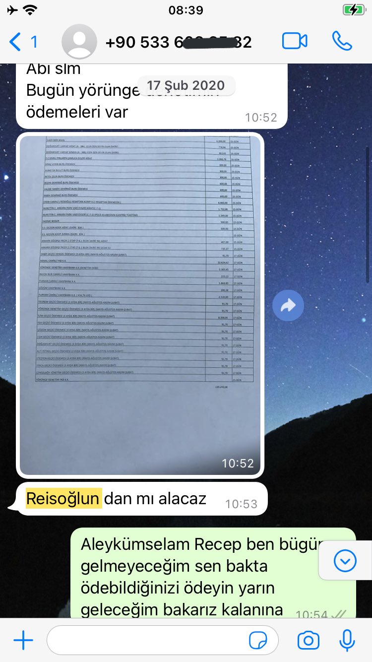 4-fatih sarıoğlu’na bakıyorum. ıras dışındaki firmalarından biri de reisoğlu. hortum şebekesinde kullanılan firmalardan biri. mesajlarda ve ilgili tabloda göreceğiniz gibi nurettin canikli’nin aidatlarından ailesinin kredi kartlarına kadar icabında bu şirket hesaplarından ödeniyor.