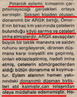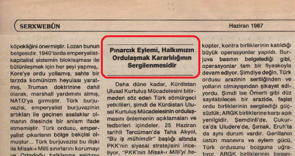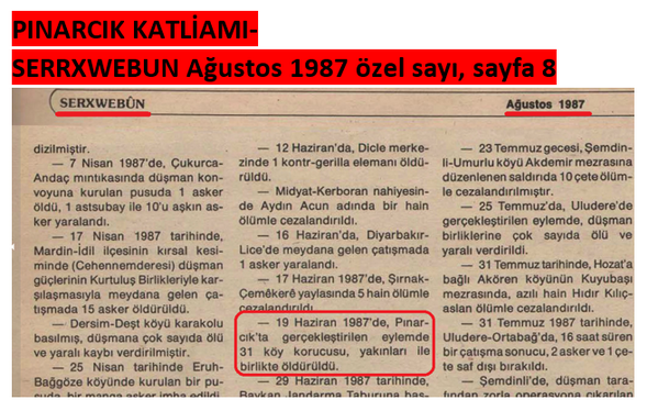 bugünlerde ota boka devlet yaptı diyen bebek katilleri, bu katliamı o yıllardaki yayın organları serxwebun dergisinde övüne övüne anlatmıştır.